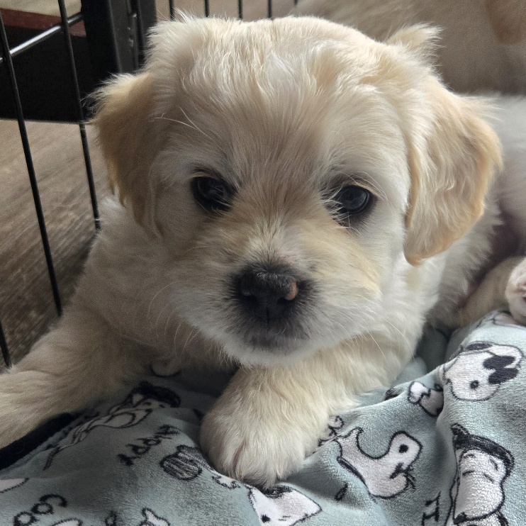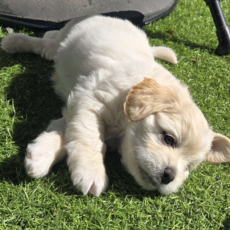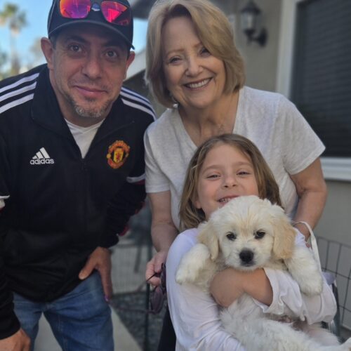 He absolutely loves being held and will happily soak up all the attention you’re willing to give. While he enjoys wrestling with his brothers and chewing on toys, his favorite place is in your arms. Ander’s gentle, loving personality makes him a perfect companion for a family looking for a cuddly best friend.