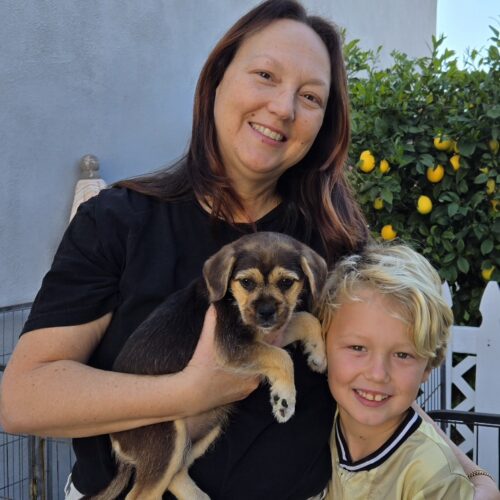 She may be a little timid at first, but her sweet nature quickly shines through. She’ll come up gently for pets and reward you with soft little licks. One of the smaller puppies, she doesn’t let her size slow her down—she jumps right into the fun with her bigger siblings. She also knows when she needs a break and will politely ask for a little timeout. Anise would love a patient, loving home where she can continue building confidence.