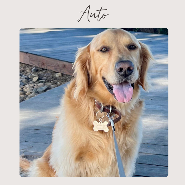 Meet Auto, your classic golden retriever gentleman with a heart as big as his fluffy frame. At around 9 years old and 80 pounds, Auto is the definition of easygoing, loving companionship.