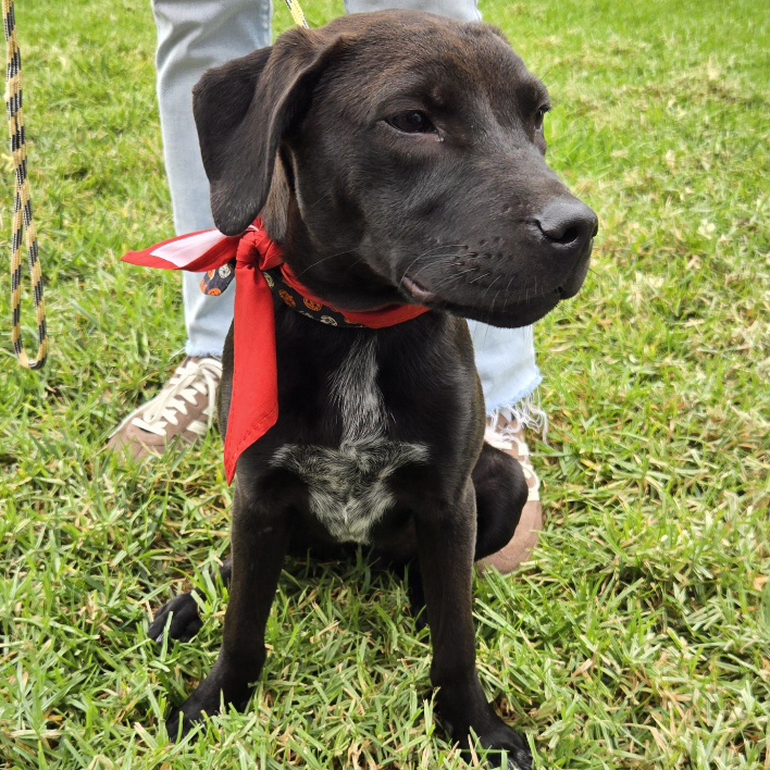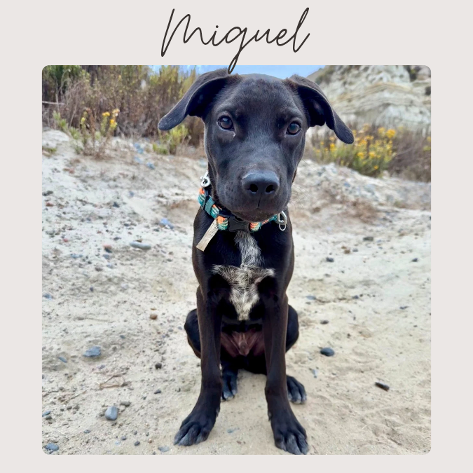 Miguel came to us with his mama and siblings, and he’s been stealing hearts ever since. This sweet boy is full of energy, always ready to play with people and dogs alike—and just as quick to snuggle up in your lap when it’s time to rest.