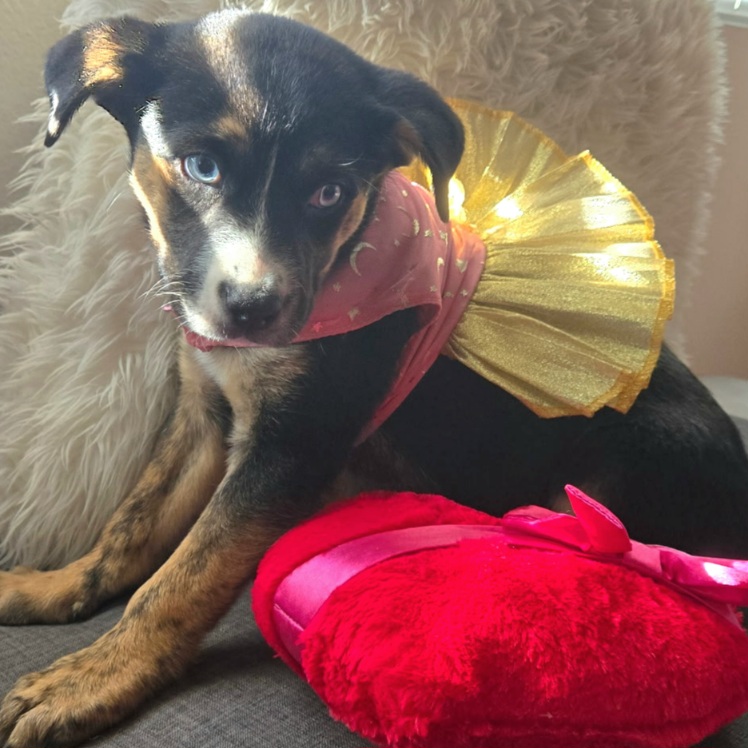 Crystal was the first puppy rescued from living under an abandoned house with her mom and littermates. Everything in the world was brand new to her when she arrived in foster care, so it’s no surprise she was a bit shy and hesitant at first. With patience and love, Crystal is already opening up beautifully, showing just how sweet, affectionate, and loving she truly is. She’s a smart girl who enjoys playtime, cuddles, and soaking up attention. Crystal does well with kids and other dogs and will thrive in a home that continues to help her build confidence and feel safe. The best part? Watching her personality blossom more every day.