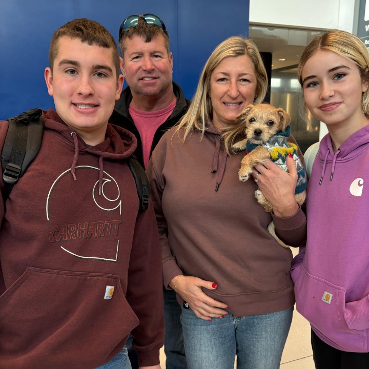Finn has a natural leader spirit — curious, outgoing, and eager to explore. He loves playing with other dogs, would do wonderfully in a home with kids, and settles beautifully at night, sleeping through without a fuss. He’s treat-motivated, smart, and especially delighted by simple pleasures like pushing little pieces of ice around outside.