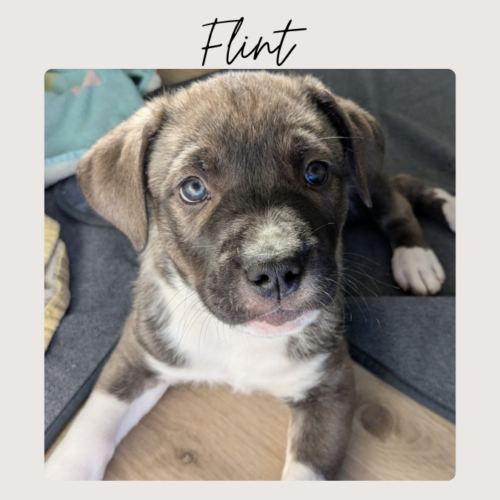 Flint loves to play and discover new things, but his favorite pastime is showering his people with kisses. This affectionate boy has a true lover-boy personality and thrives on connection and attention.