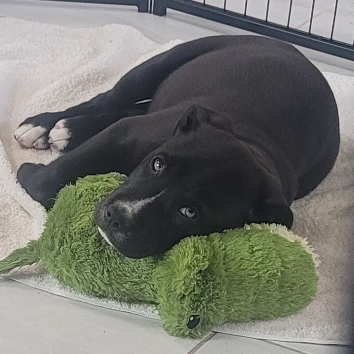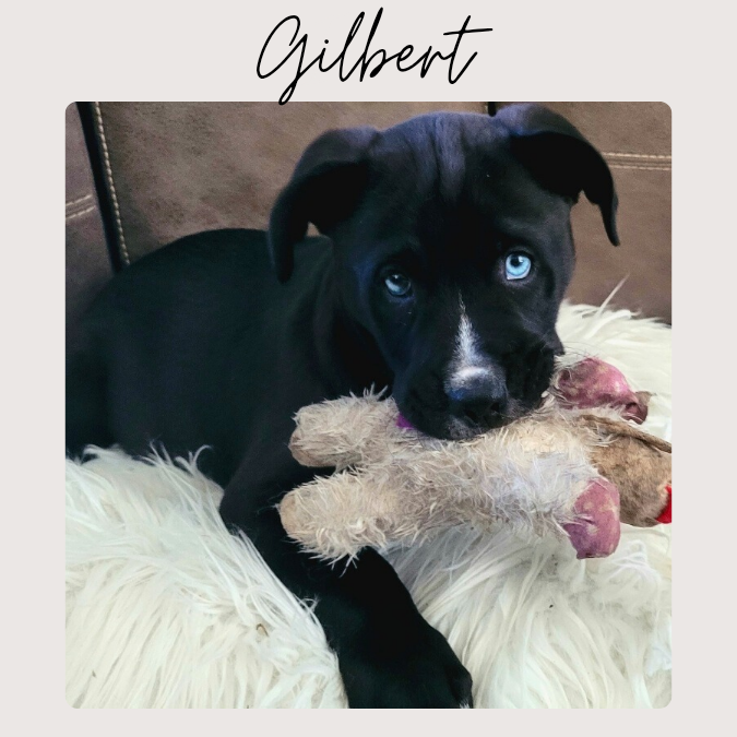 Whether he’s chasing a ball, wrestling with Mabel, or curling up for a nap, Gilbert brings joyful energy to everything he does. He adores people, enjoys attention, and is already showing he’s a smart boy who will love learning new things.