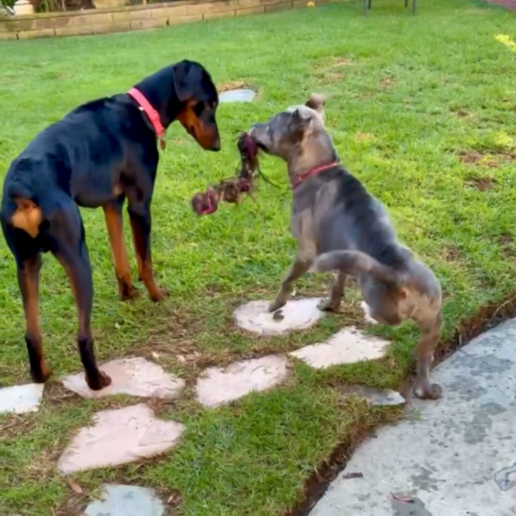 But despite everything he’s endured, Jay’s spirit is nothing short of remarkable. He leans in softly for affection, grateful for every gentle touch. He plays beautifully with other dogs when introduced properly, enjoying tug-of-war, playful zooms, and the simple joy of companionship. Now safe in a warm home, Jay has been sleeping deeply, eating well, and slowly filling back out — finally getting the care he deserved all along.