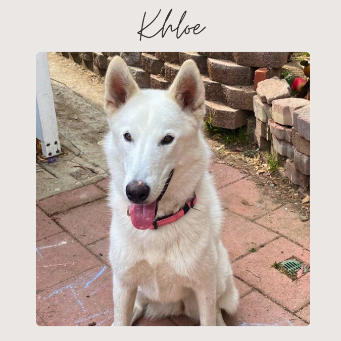 This good girl has a gentle, joyful spirit that makes everyone around her smile. One of Khloe's most special qualities is just how well she gets along with, well, everyone. Kids, cats, other dogs — Khloe greets them all with a wagging tail and an open heart. If you have a full, busy household, she will fit right in and likely become everyone's favorite family member in no time.
