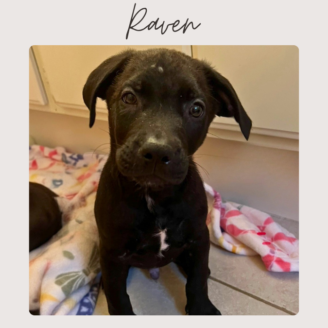Raven enjoys puppy play, human attention, and lots of affection. He’s social, curious, and eager to bond. Pee pad trained and full of charm, Raven will make a wonderful companion for an active, loving home.