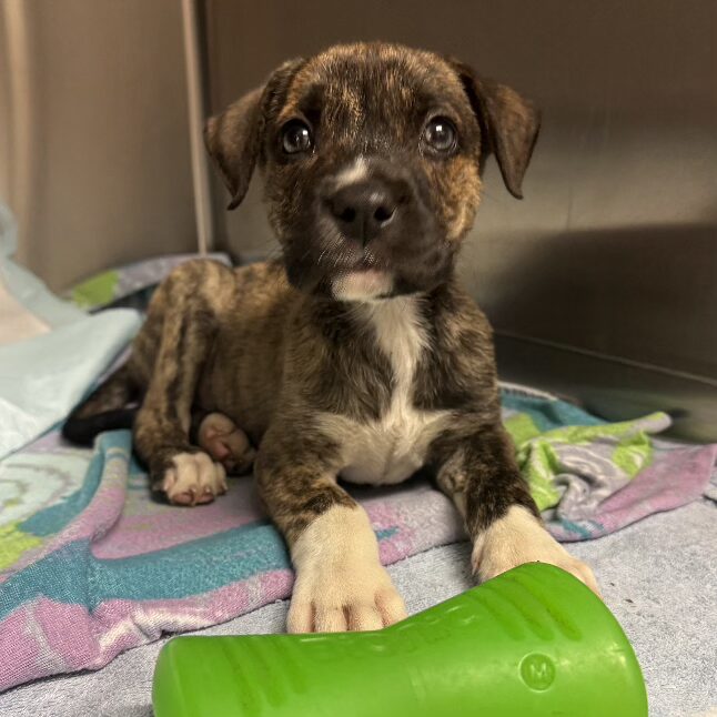 He’s a spirited, curious boy who loves rope tugs, chew toys, and Kongs to keep him busy—chewies are his absolute favorite! Sammy is still in the “chew everything” puppy phase, but he’s easily redirected and eager to please. Though he can be a little night owl, he settles right down when the house is calm. With love, guidance, and playtime, Sammy will grow into the perfect lifelong companion.