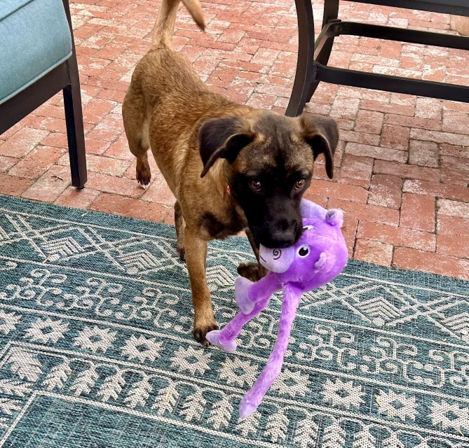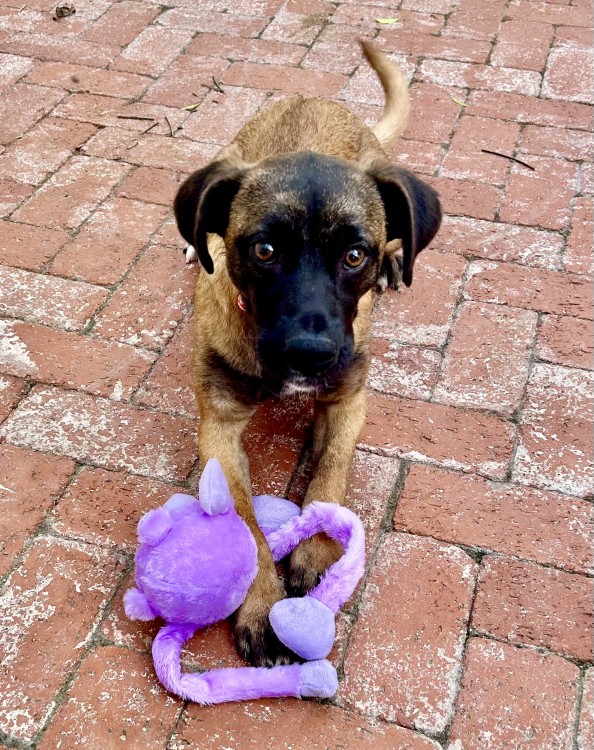 Sasha is a 5-month-old terrier mix with a gentle heart and a resilient spirit. Weighing about 25 pounds, she is still very much a puppy—playful, curious, and learning about the world around her.
