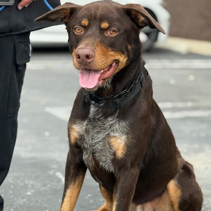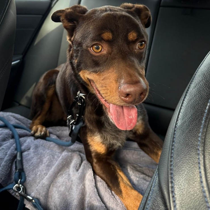 With his rich chocolate coat and warm tan markings, Slauson is striking — but it’s his gentle, people-oriented nature that truly shines. He loves human connection and forms deep bonds, becoming incredibly loyal once trust is built. Though a bit nervous at first, he warms up quickly with patience and kindness.