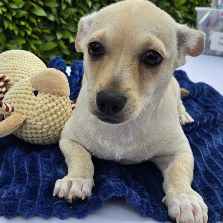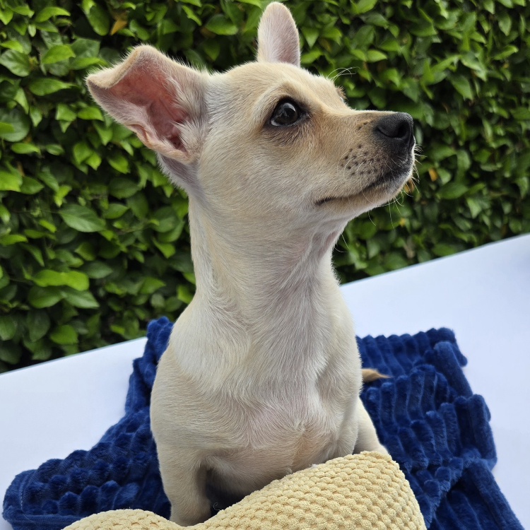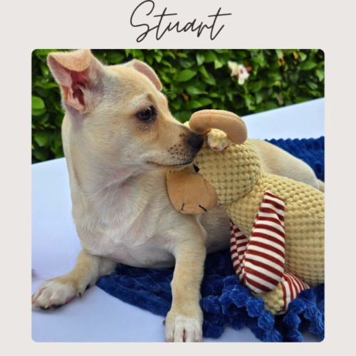 Rescued from a field with his brothers, this Chihuahua mix is thriving in foster care and showing off his fun-loving personality. Stuart is playful, energetic, and affectionate — always ready to join in the action. He gets along great with other dogs, cats, and kids, making him an easy addition to many types of homes. As the “big brother,” Stuart is confident, outgoing, and just as cuddly as he is lively.