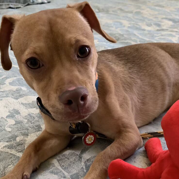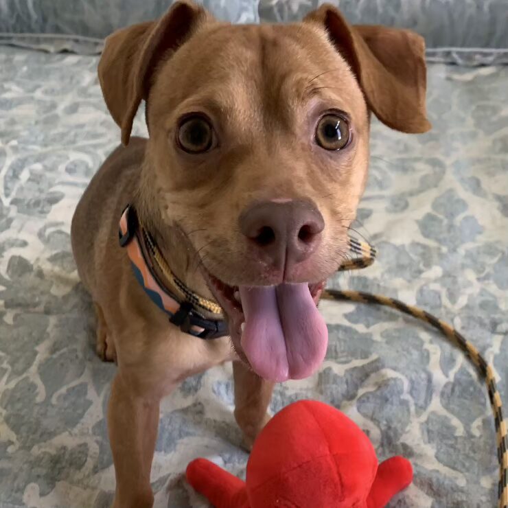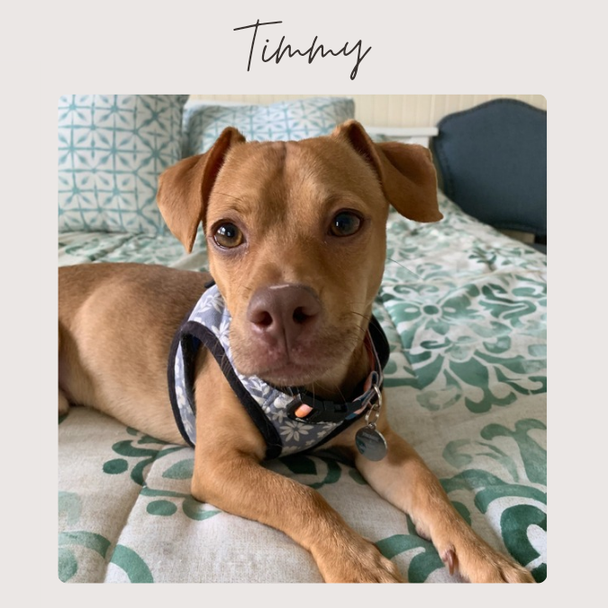 Don't let his size fool you — this little guy has energy for days! Timmy is the perfect combination of cuddle bug and adventure buddy. When you're on the couch, he's on your lap. When you're on your feet, he's ready to run, chase, and play until his heart's content. Toy time? He's obsessed. A ball to chase? He's already gone.