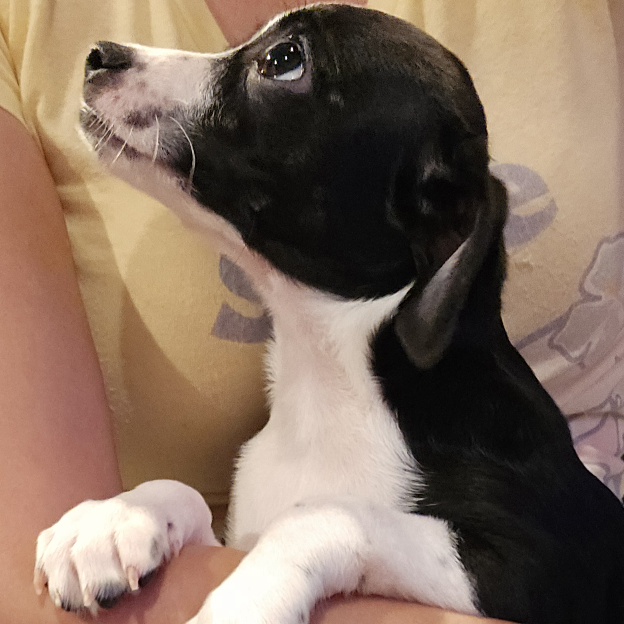Though timid at first, she’s playful, curious, and loves to explore when she gains confidence. Pick her up, and she melts right into your arms — calm and oh-so-sweet. She’s good with other dogs, fine with cats, and will thrive in a patient, loving home that helps her continue to come out of her shell.