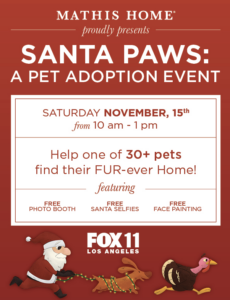 04nov3:44 pm3:44 pmMATHES HOMES - SANTA PAWS- FOX 11 - November 15th. ADOPTION EVENT 10-1 pm - 13300 Jamboree Road, Irvine.